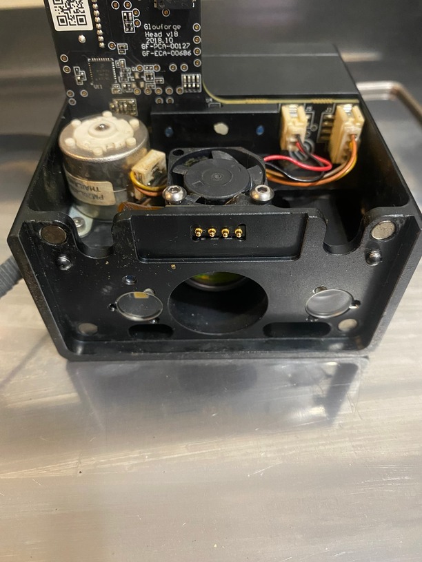Your trace right to the left is lifted. It will cause the fan speed issue. It is the trace that is carrying the signal from the carriage plate pads I opted for a replacement print head. There are some options to fix it your self but its a bit of a task.