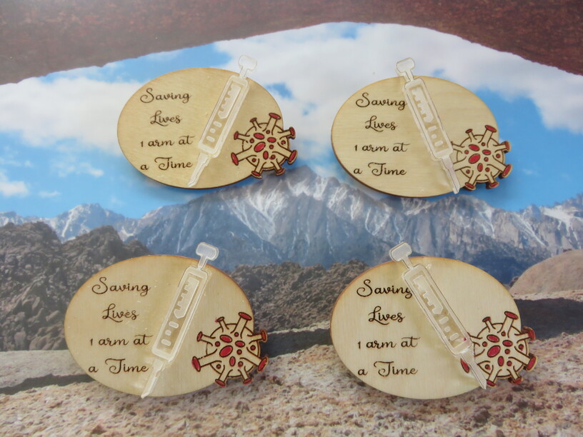 Well, Hope you don’t mind. I made a few for my wife and I, then modified the text and thinned down the needle to come up with these for the workers at the medical facility that we got our second shots at.
