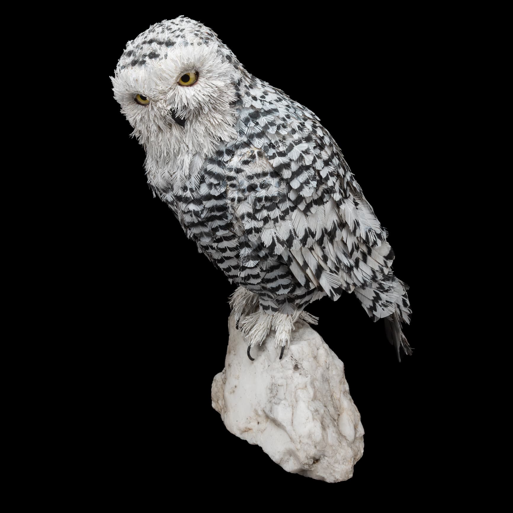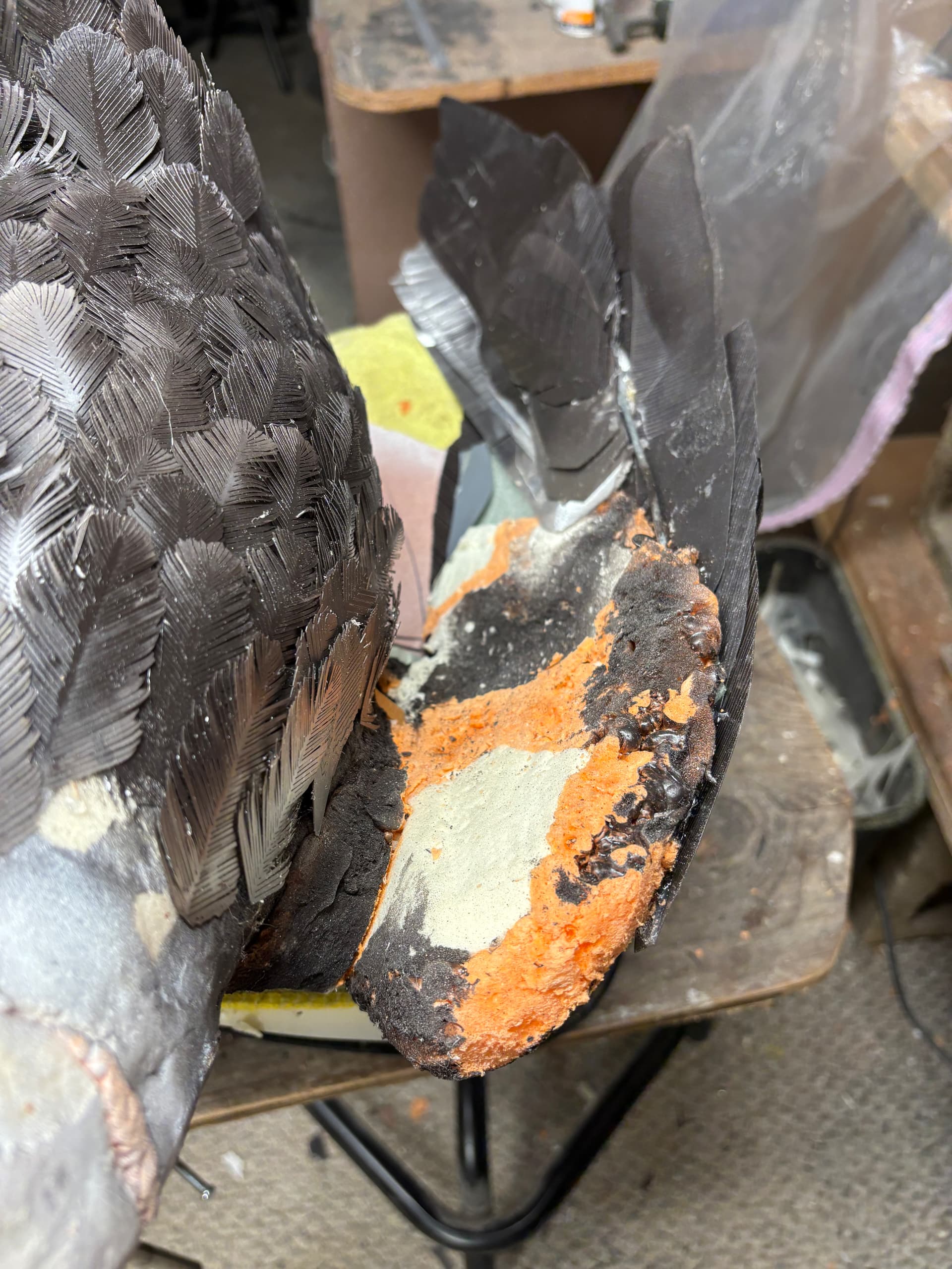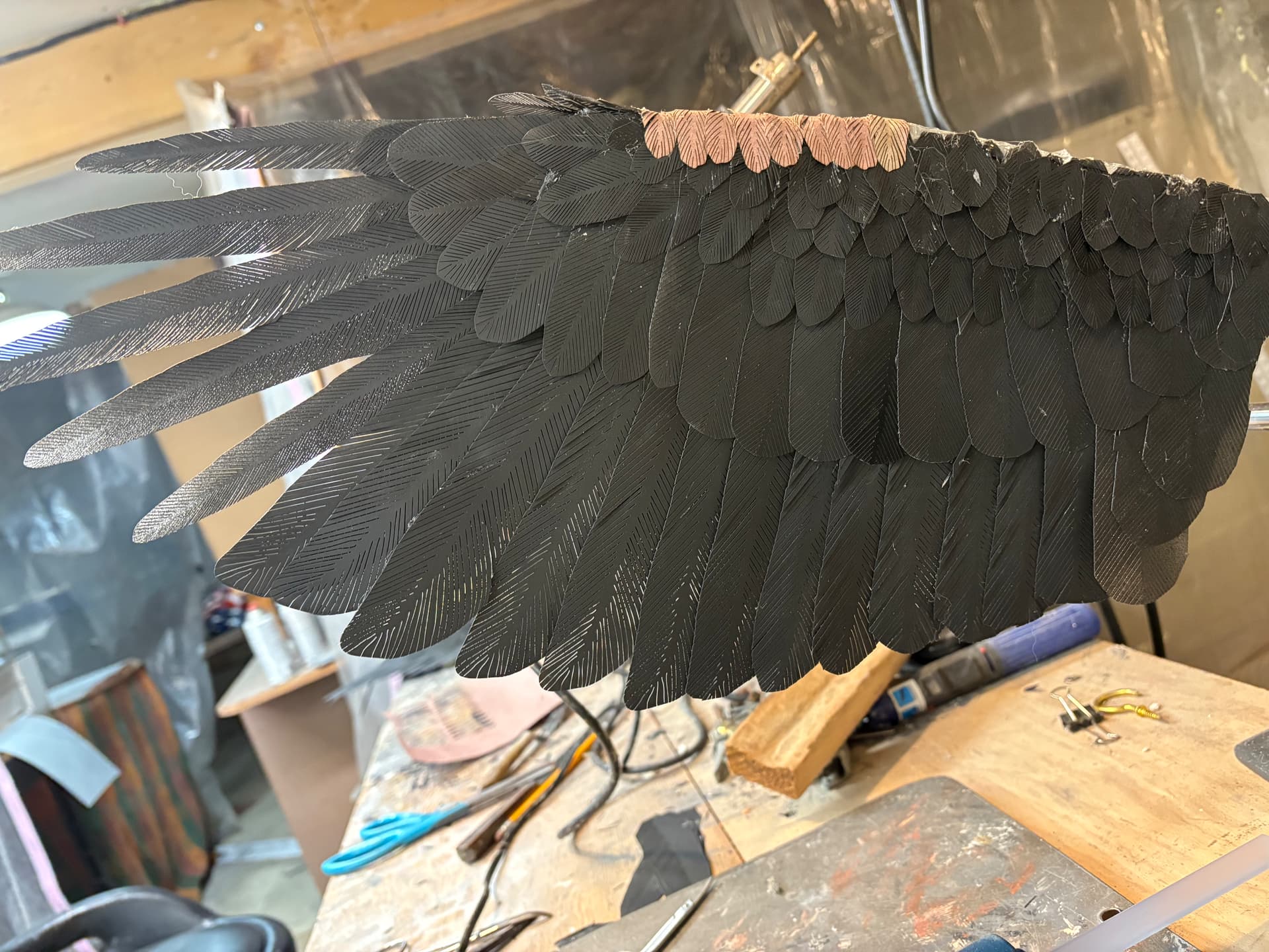 With all my projects I try to use only recycled, used, trashed, or otherwise discarded stuff. The birds are primarily made from plastic sheets found inside TV and monitor screens and rigid foam insulation used in walls and ceilings. I design the feathers and cut them on the Glowforge. (The material is safe to cut. I have been using it for years. I vent outside) They are then shaped with a small heat gun, painted and then glued on the body (foam). For a while I was counting the feathers and the Snowy Owl had 1006. Probably 500 of them were on the face! Here are a few of my latest birds with some ugly in process pictures. Have fun deciphering what’s going on. I have an instagram account for more background: thinking_out_of_context