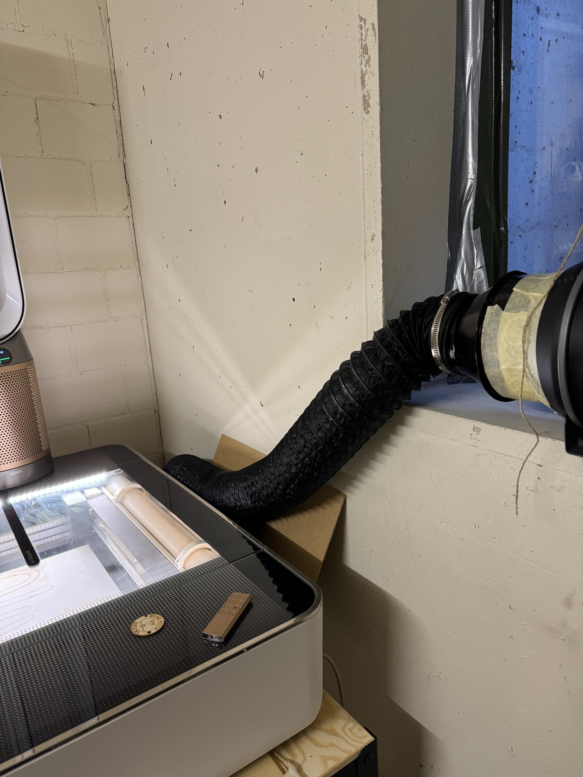 First, test the window seal. Set up incense right outside the window of your workshop, then run the external fan and Glowforge at very low power while not lasering anything… And run it for a while and see if you start to smell the incense inside. You would know for sure whether or not you’re sucking in from the outside and can concentrate your efforts on the window seal.
