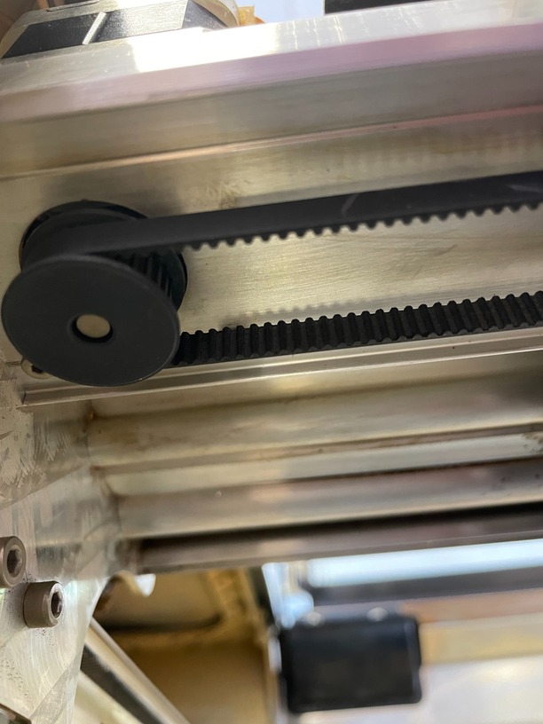I reassembled the carriage plate, the belt and when I push the carriage to the right it moves with less resistance than when I move it to the left. And the teeth of the belt are facing inwards. I tightened the belt enough that the front side of the belt bounces inward and the back side does not move.