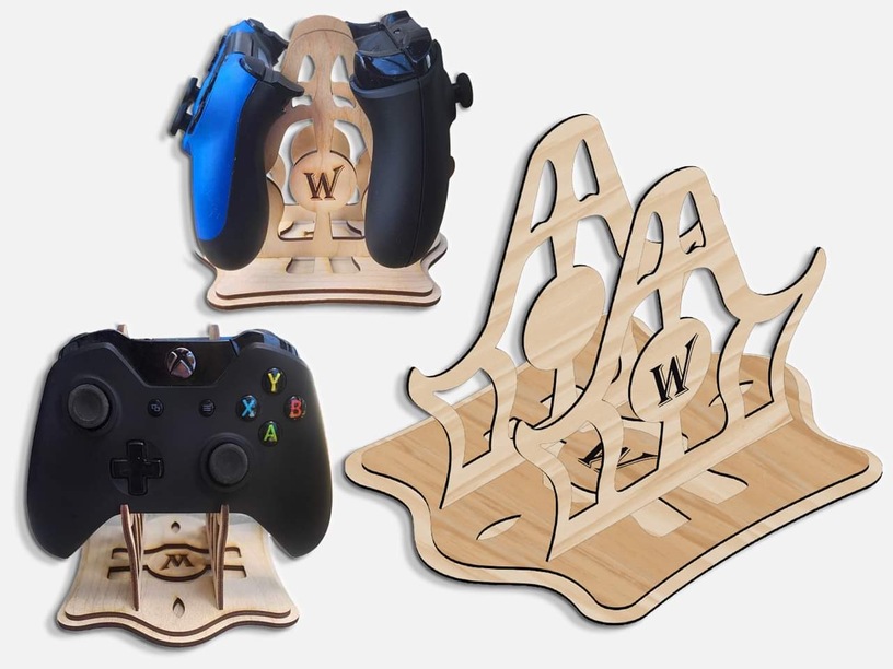 Been awhile since I made a new gamer stand. Came up with this compact design with a few areas to add letters, logos, or monograms too.