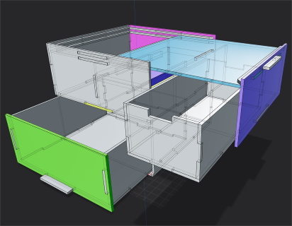 Now it’s assembled and it went together fine. BUT if I had to do it over I would add a lot more tabs and tighten up all the tolerances and account for kerf. Especially for the sliding rails up top.