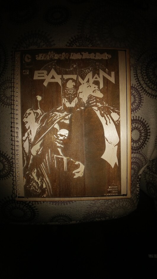 just stretching my legs on the ol glow forge. I saw this project a couple months ago and wanted to see if I could recreate for as cheap as possible . Its just a plain dollar store note book with the coils carefully removed and put back in . I used the original cover as template and I did hand drill every hole. It is non proof grade and i it was just some plywood i had laying around from my cnc .