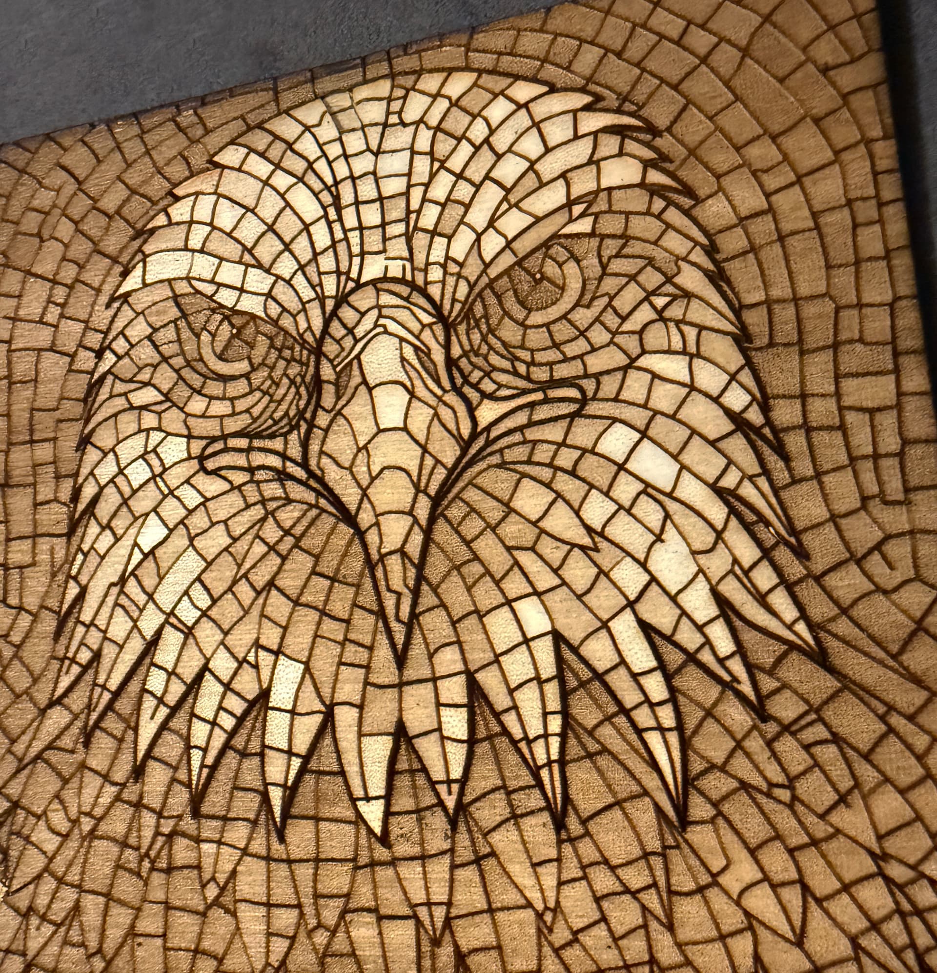 Correct me if i am wrong, It seems like it is a 3 layer engraving, topmost the beak, next the head, and last the background. Am I correct? or is it an effect of wider engraving lines? Thanks for sharing.