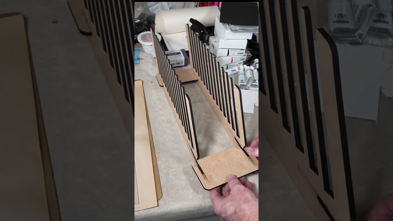 Watching the video I posted about my dragons Celtic knot map compass prints, I realized the print drying rack I lasered up for an earlier printmaking project puts in an appearance. This is four pieces cut from Thick Draftboard that slot together to hold prints while the ink dries. It comes apart again for flat storage.