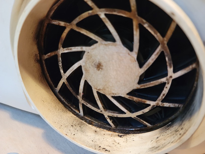This is the fan that expels smoke from inside the Glowforge to the outside. It needs to function or the smoke will escape into the room and your machine will not work properly if the fumes are not moving out. You need to clean those fan blades. It isn’t necessarily easy, but with qtips or straw brushes it can be done and should be done regularly.