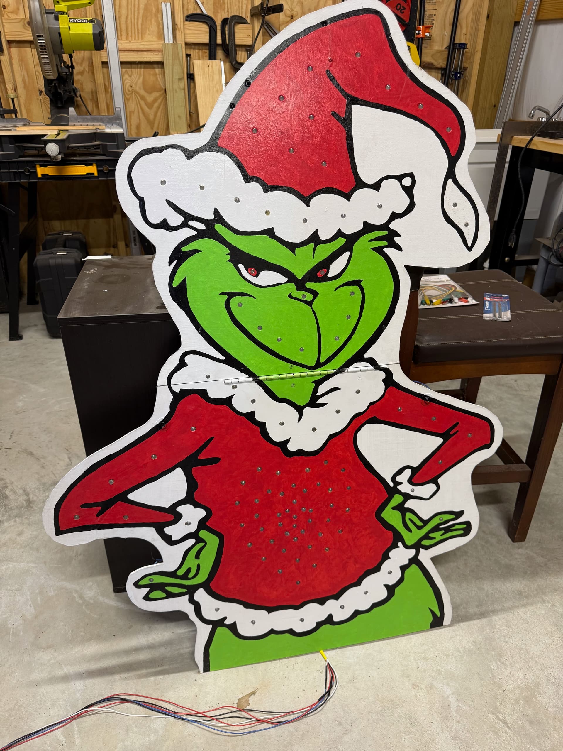 For a long time I’ve wanted to build some plywood yard art for the holiday season. For copyright reasons I’ll just refer to him as Grumpy Guy. I created this in Inkscape, then cut many scaled versions on the Glowforge trying out various layouts for the LEDs. The finished version was made out of 1/4” ply and was a little too big for the forge. I’m uploading the SVG without the LED holes but just ask and I can provide those too.