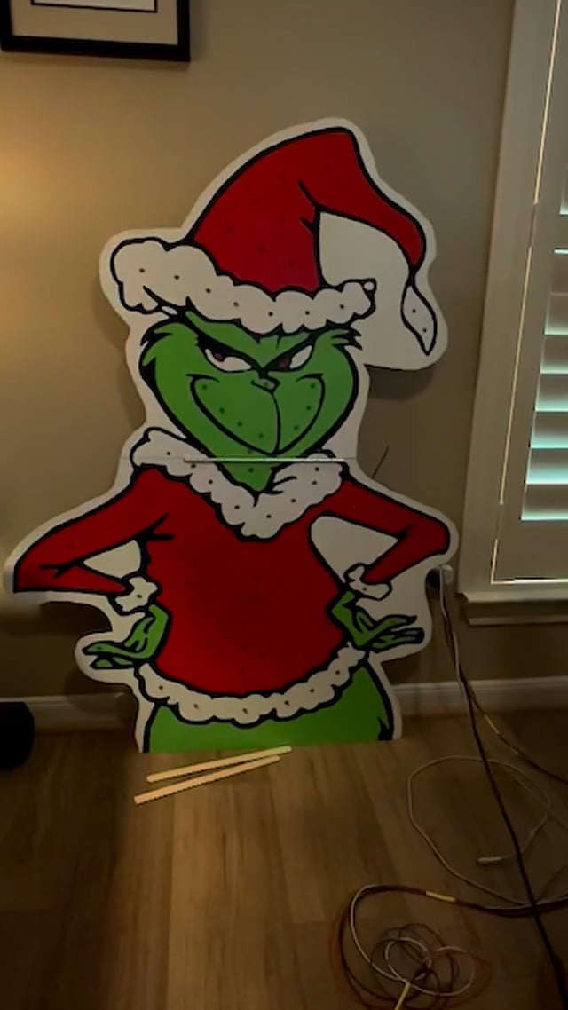 Here’s a shot of it at night, but it’s not very good video. I redid the mounting after this to get it more centered. This year we’re going to try and put it out front on our fence. Grinch at Night