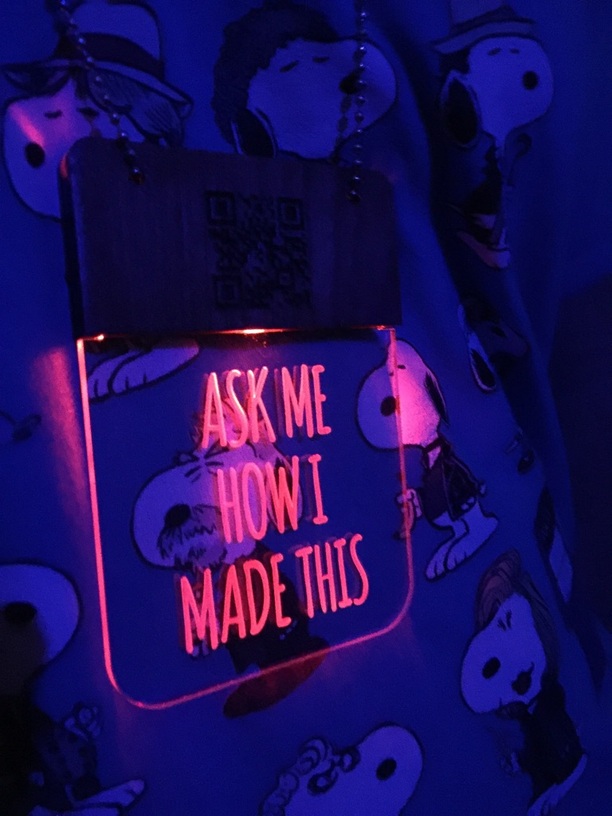 I created a new acrylic insert for day 2. Got few people to scan the QR this time. The battery lasted over 2 days. Then I thought it would last longer if it flashed (since it is off for half the time, right?) So the kind people over a NightFire Electronics gave me one from there selection!