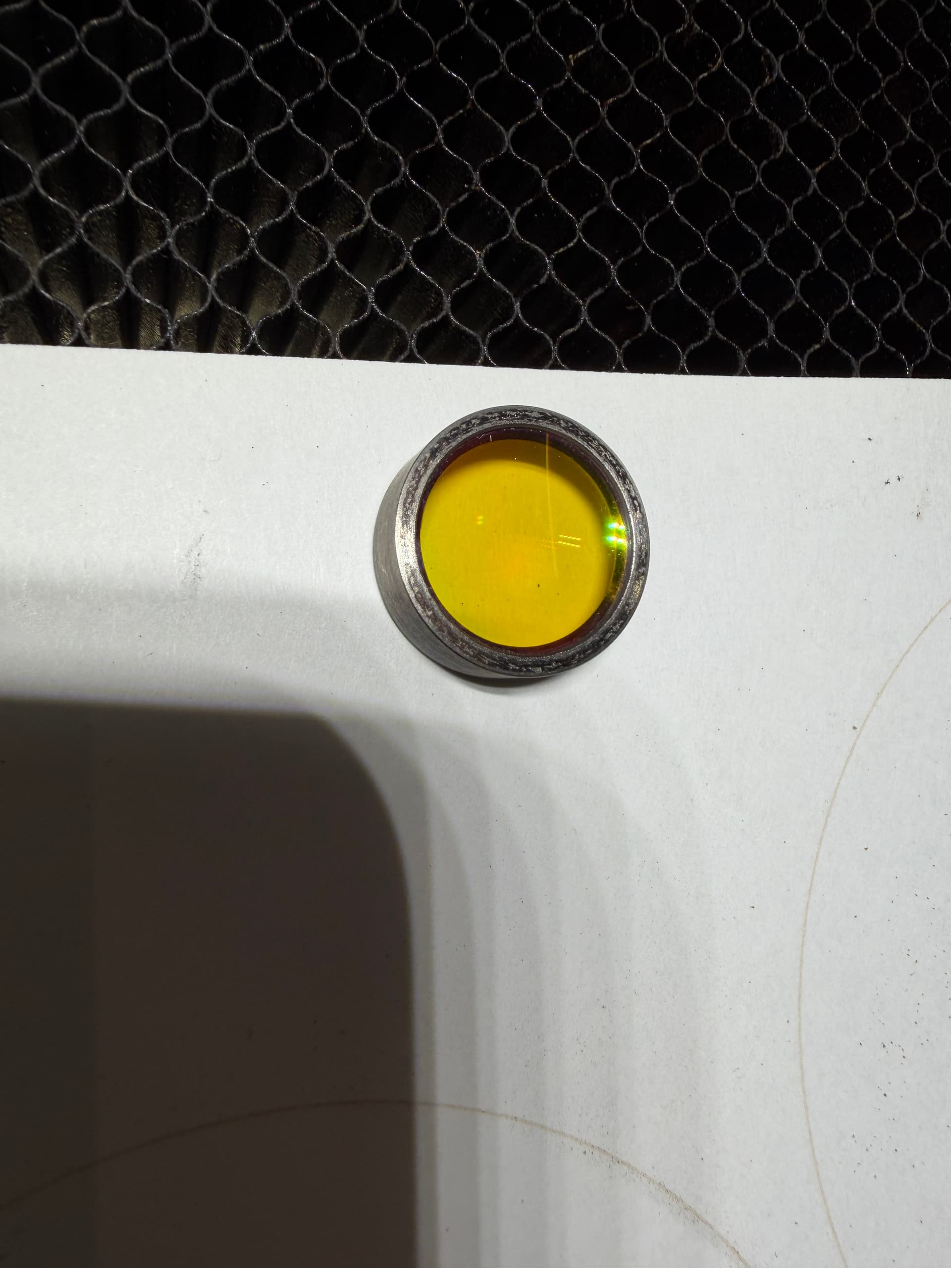 Hi everyone, thank you for all your advice! We were looking closely at the lens again today, and we realized that the replacement lens we received is not the correct lens. Luckily we hadn’t thrown out the old lens, and we just happened to pick them both up and compared them, which is when we found they were different. The original lens from Glowforge is just slightly taller, and when you look closely at them, the beveled lip on the new lens is larger than the original, which is probably keeping it from fitting correctly inside the machine. The lens part itself is also a different size, which is probably why we’ve had so much trouble cutting things too. Here they are pictured side-by-side; the original, cracked lens is on the left and the replacement one we received is on the right.