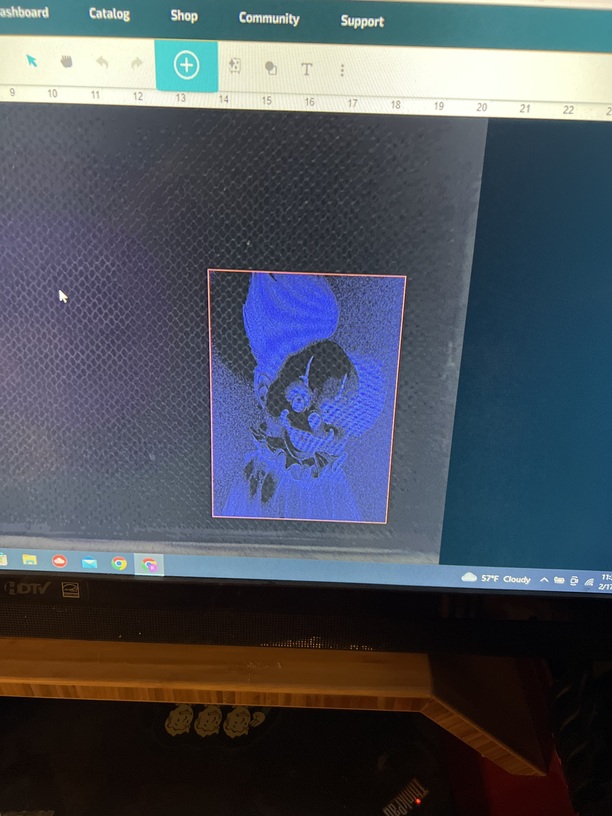 Went looking for something to better ID a laptop that gets used in the Arctic. Converted to a negative image, and engraved on MacBookPro the results came out well.