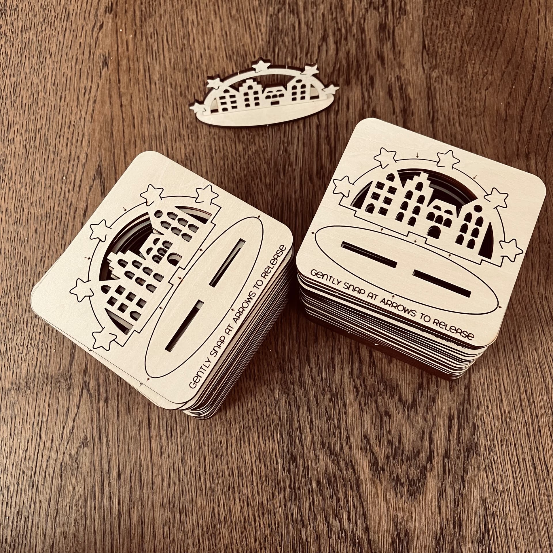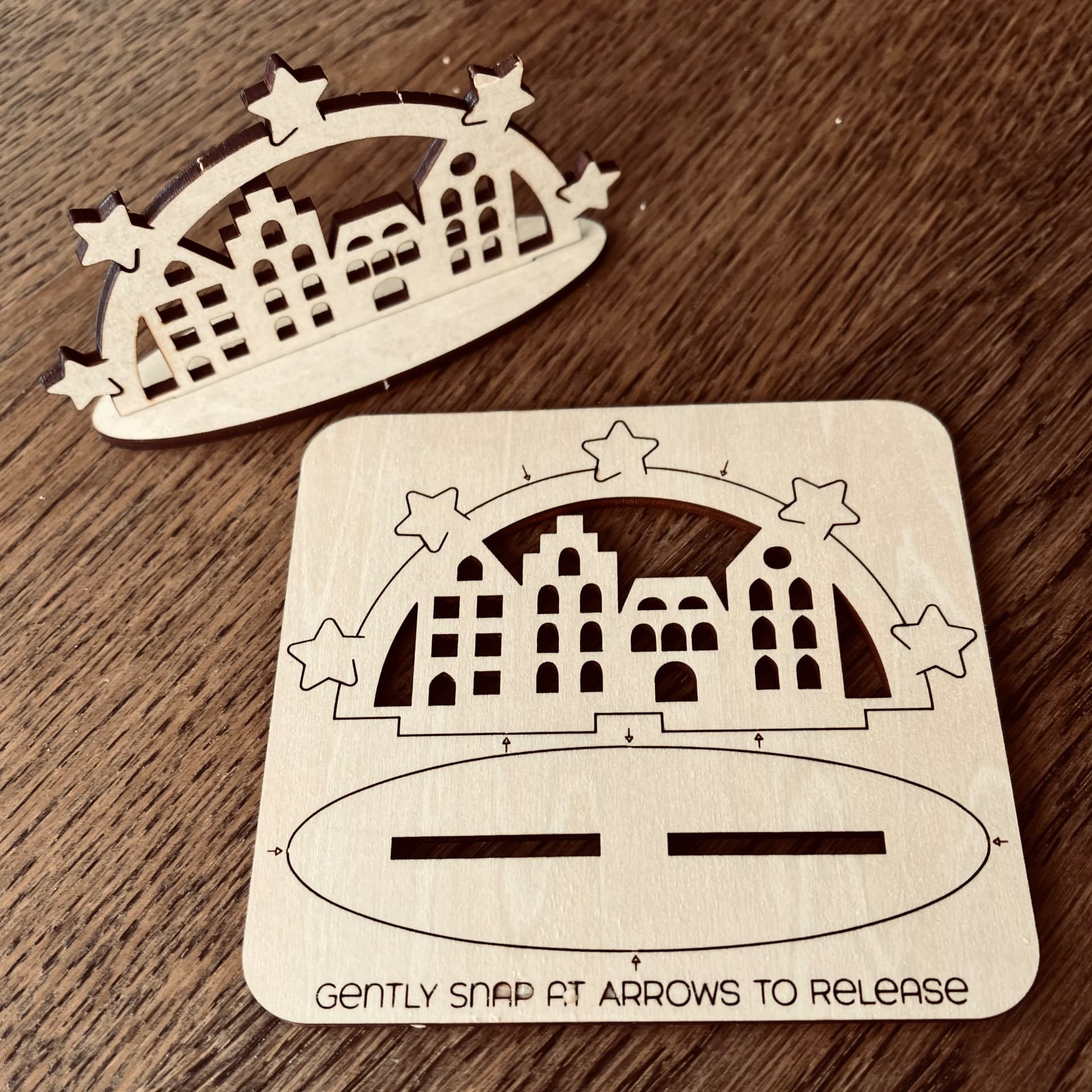 Just finished making 50 flat-pack mini Schwiboggen (window arch) giveaways for our German school’s Nikolausfest on Sunday.