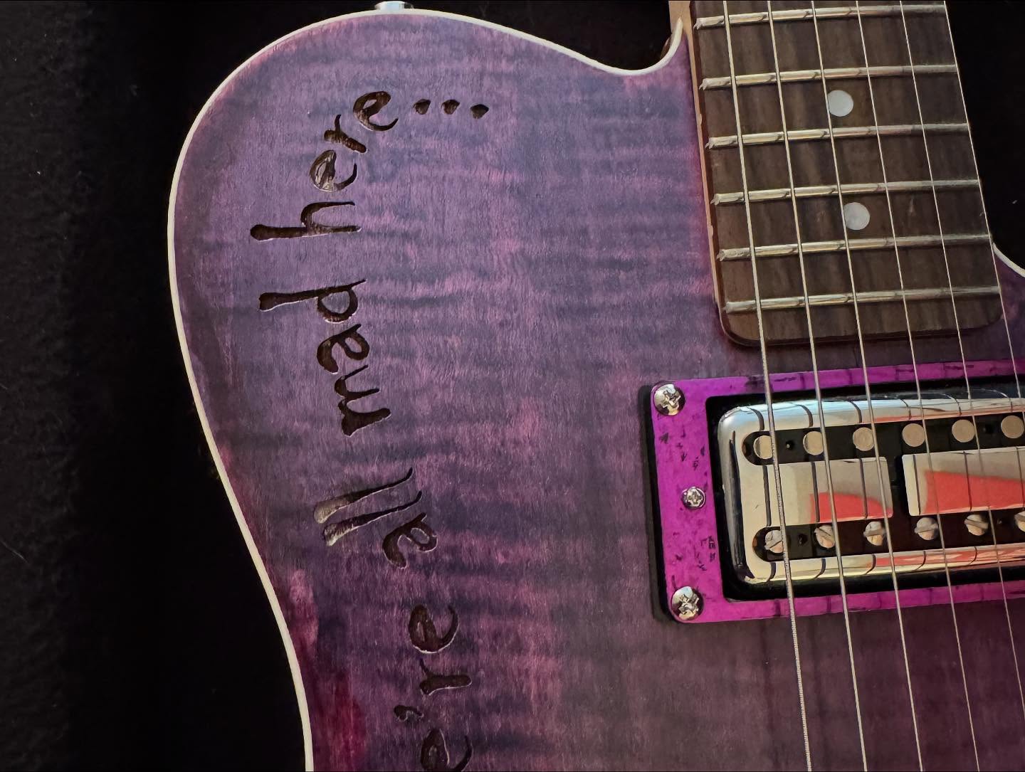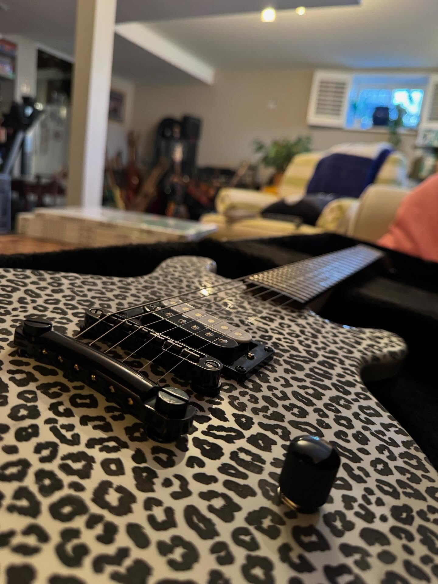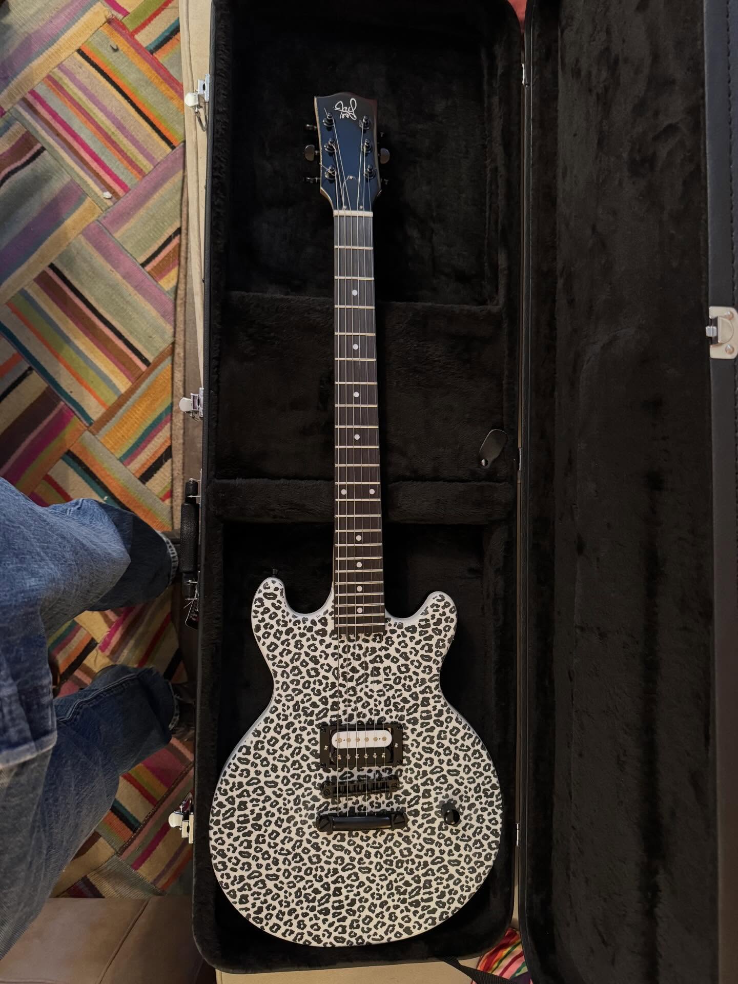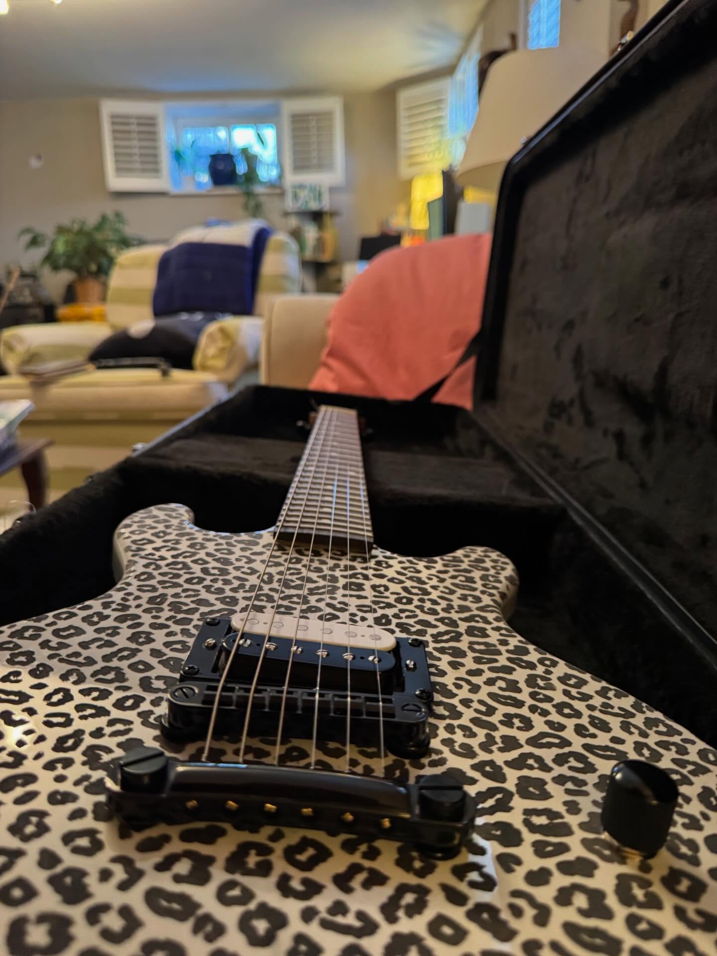 i don’t think i’ve seen any videos of her playing it, just sharing pics when she got it. it’s a heavy metal singer in minneapolis, i think. she bought one of the tracii guns leopard skin guitars and then wanted this one when it was done.