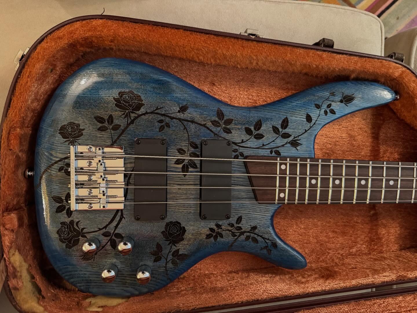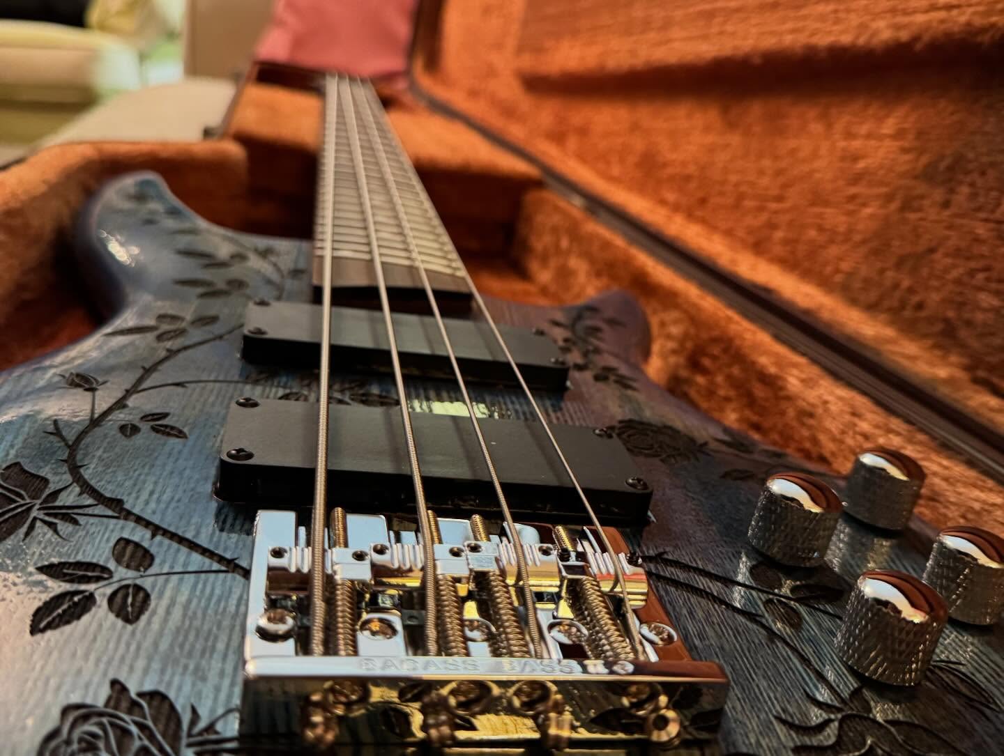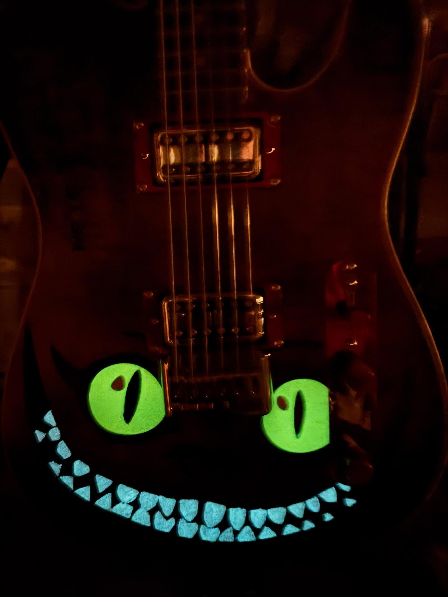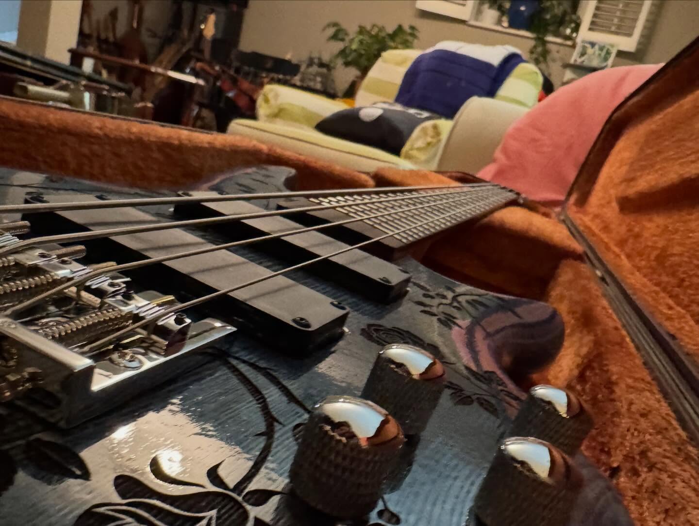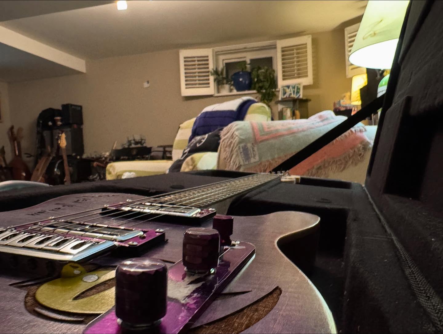 i don’t think i’ve seen any videos of her playing it, just sharing pics when she got it. it’s a heavy metal singer in minneapolis, i think. she bought one of the tracii guns leopard skin guitars and then wanted this one when it was done.