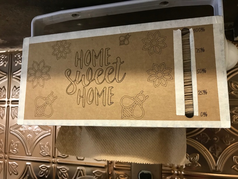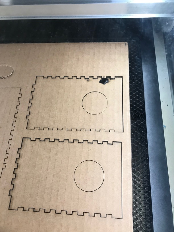 Cardboard isn’t my favorite material to work with, since thickness varies a lot! Finished piece has a burnt side - thankfully, nothing caught on fire.