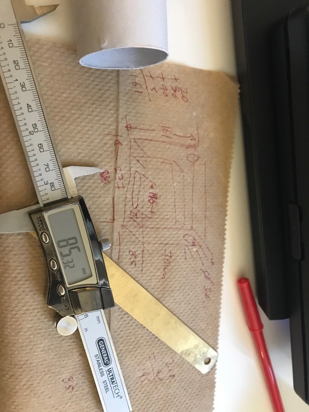 I’ve decided that the bottom piece would need to be made of a more durable material, because pieces of paper would need to be pulled out of it and there’s friction. Cardboard box just won’t cut it.