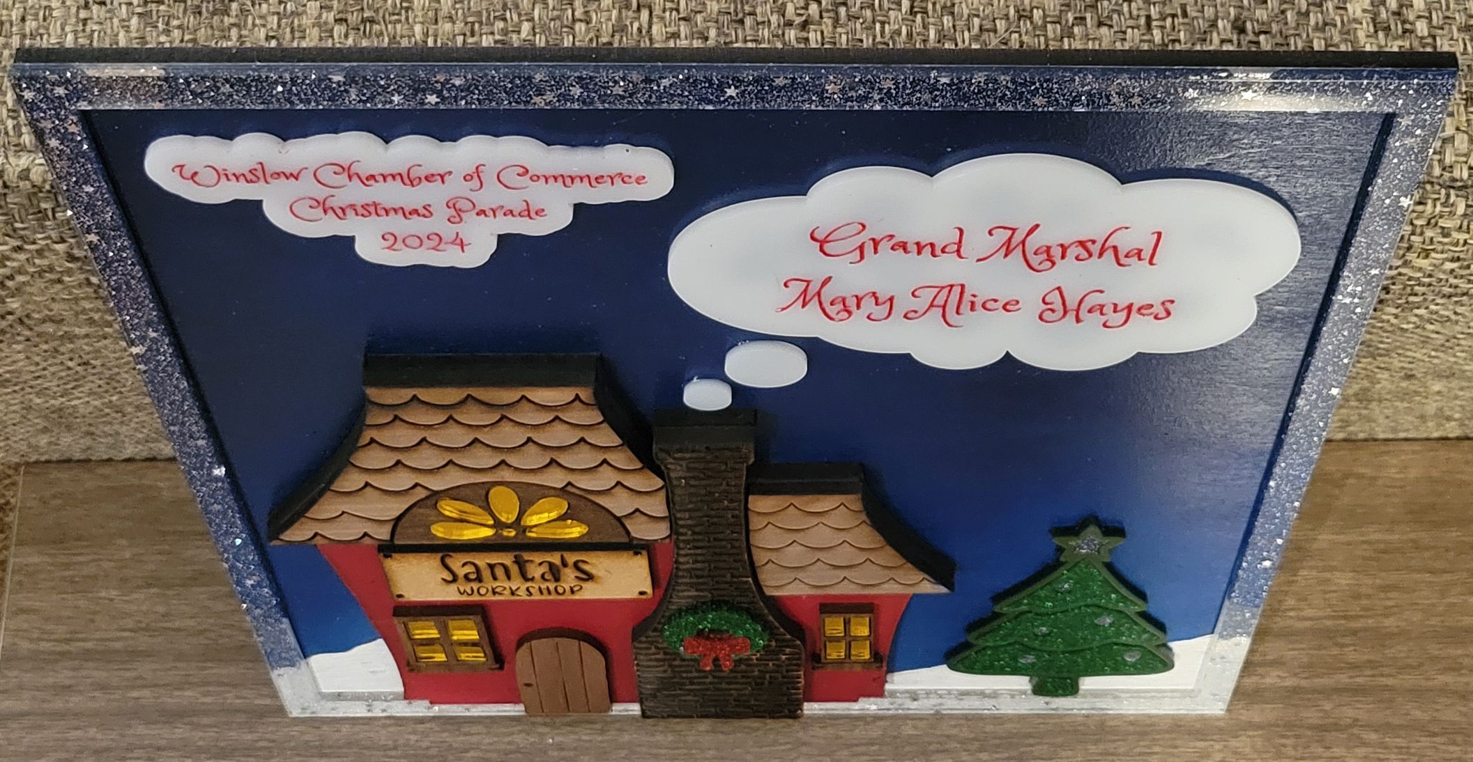 I have created our town’s Christmas parade awards for the last 5 years or so. They decide on a theme, and I try to match it. Tough, but fun.