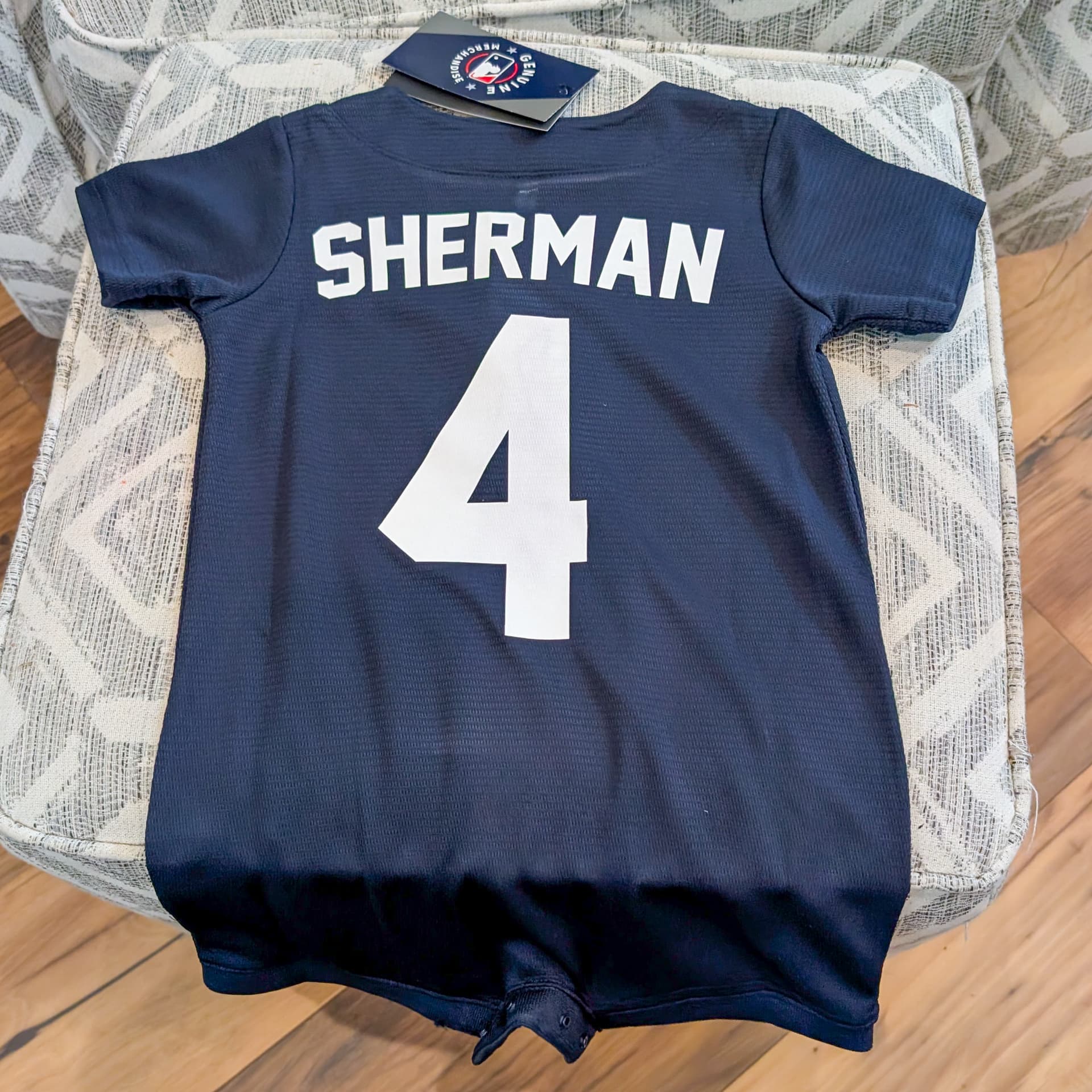 This is my first time using the Eco Icon On material and it worked great, so I thought I’d share the results. This is a gift for a baby born into a Yankees family, so I bought a onesie hoping to personalize the back. Sherman the 4th is the latest addition to a long line of Shermans, and Dad will be happy that he’s a Yankee fan.