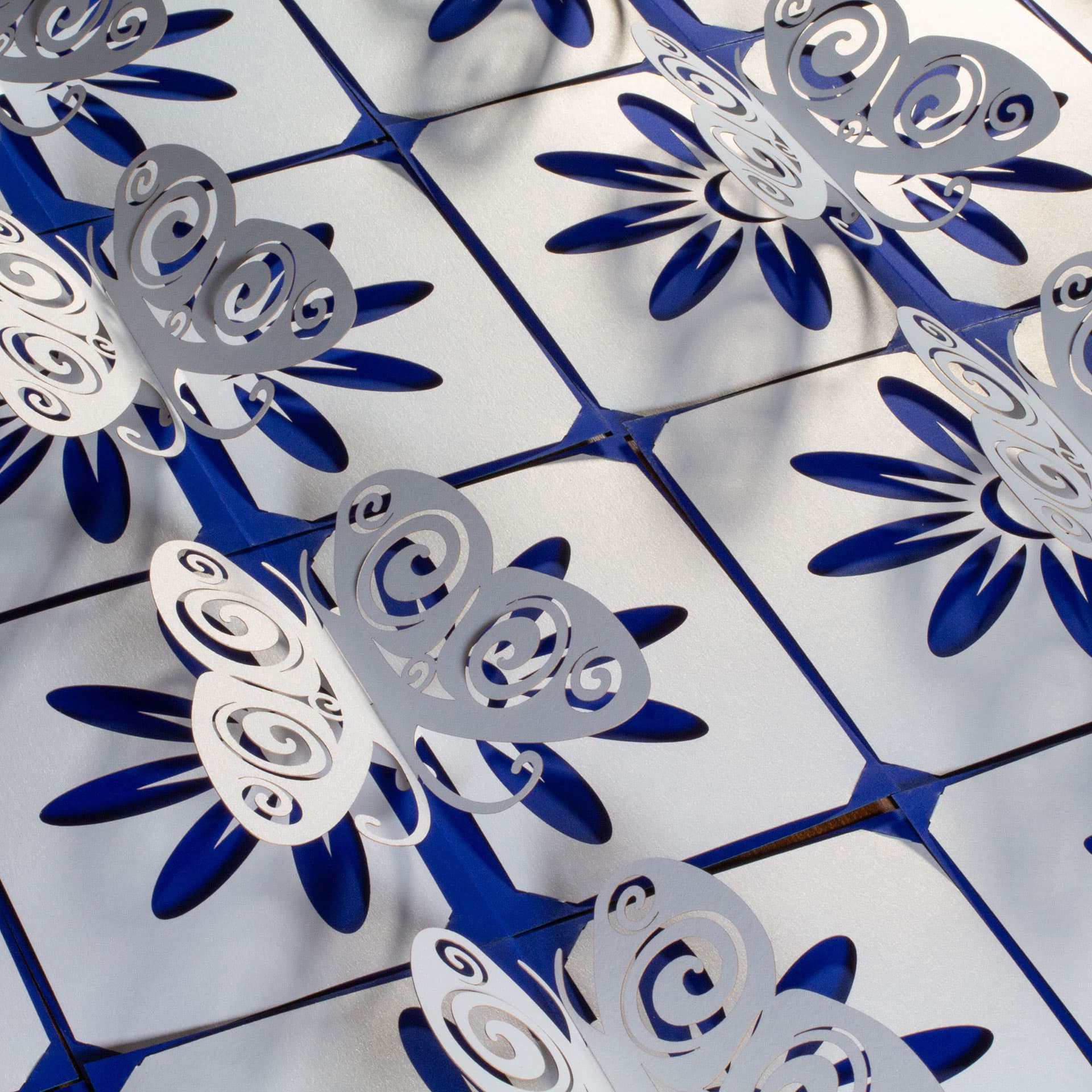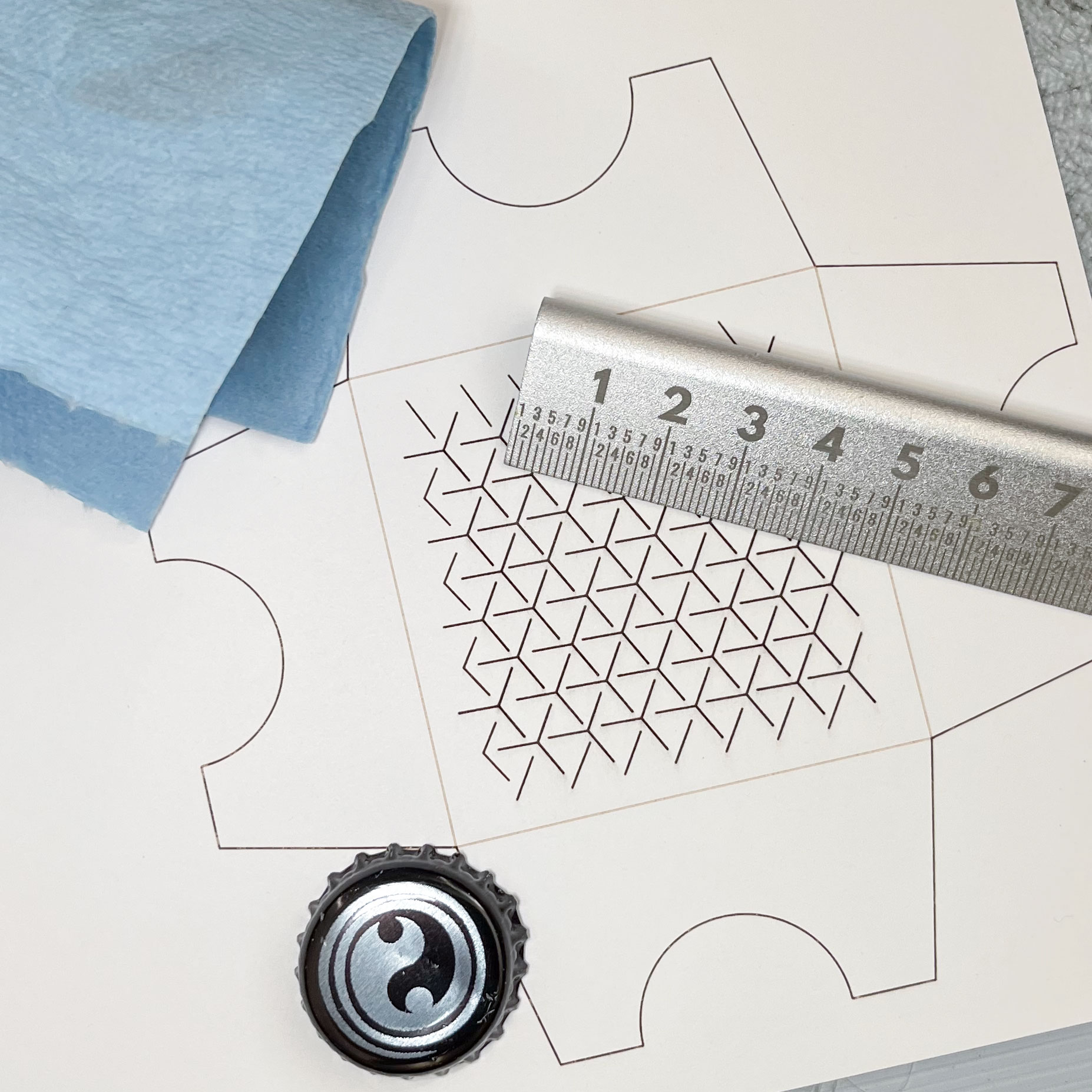 I have very dialed-in settings for cutting the card stock [1]. The Seklema mat does a nice job of preventing flashback marking (a shortcoming of the vacuum tray, alas). The clay coat finish on this particular stock is resistant to smoke and ash deposition. I also use Post-It tape to pick up much of the ash from cutting before I peel anything off the Seklema mat (I have shown off that technique somewhere else, will have to look for a link when I have time – basically, you just stick the tape down over the finished cuts, then peel it back up). A fair amount of effort goes into keeping hands, machine, and environment clean when working with white stock.