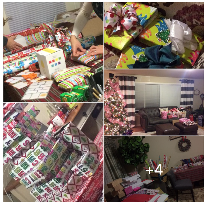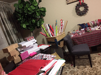 My Dad is known for serious wrapping. AAA batteries wrapped individually. Bicycle tires hanging on the wall disguised as wreaths.