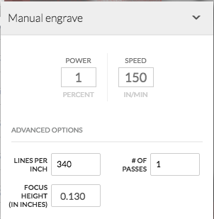 You set the focus height at the bottom. 1/4 is going to be the worst thing to attempt to defocus engrave because its right in the middle of the focus range, so youll have 1/4" defocus range on that max at the beginning.