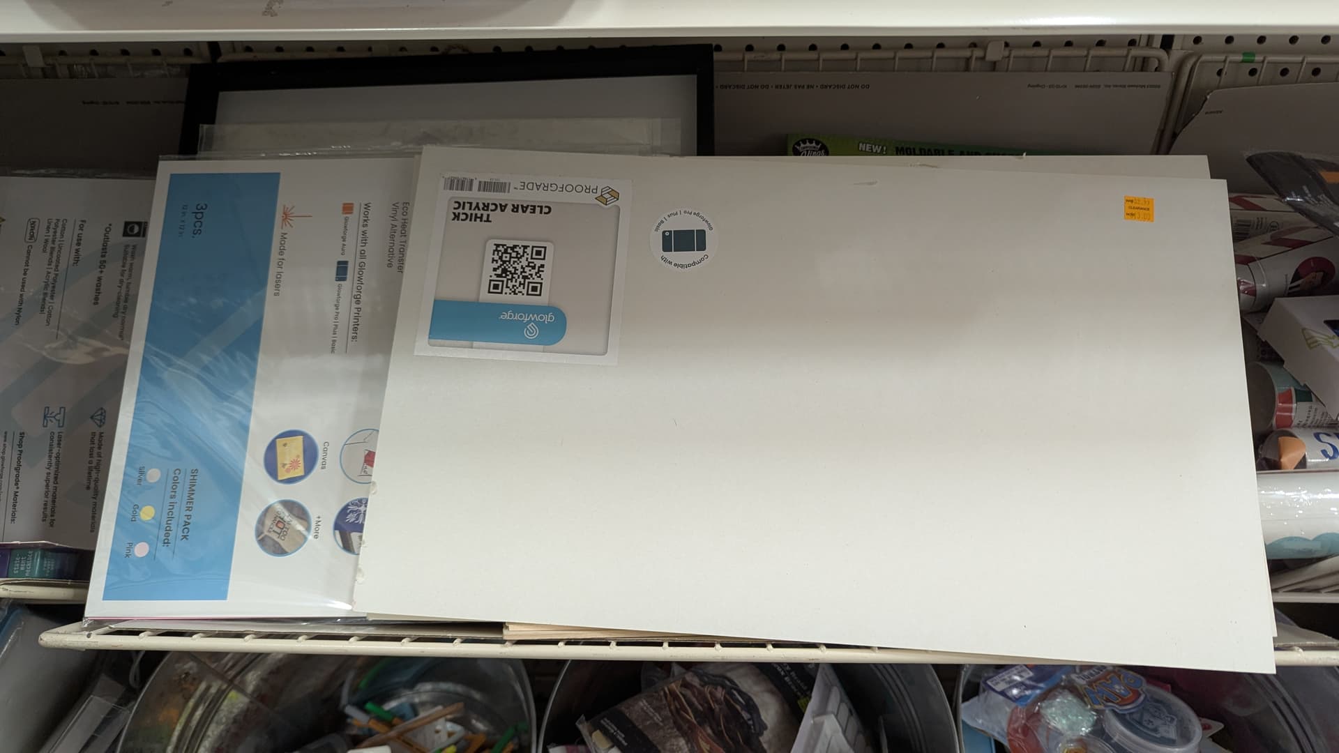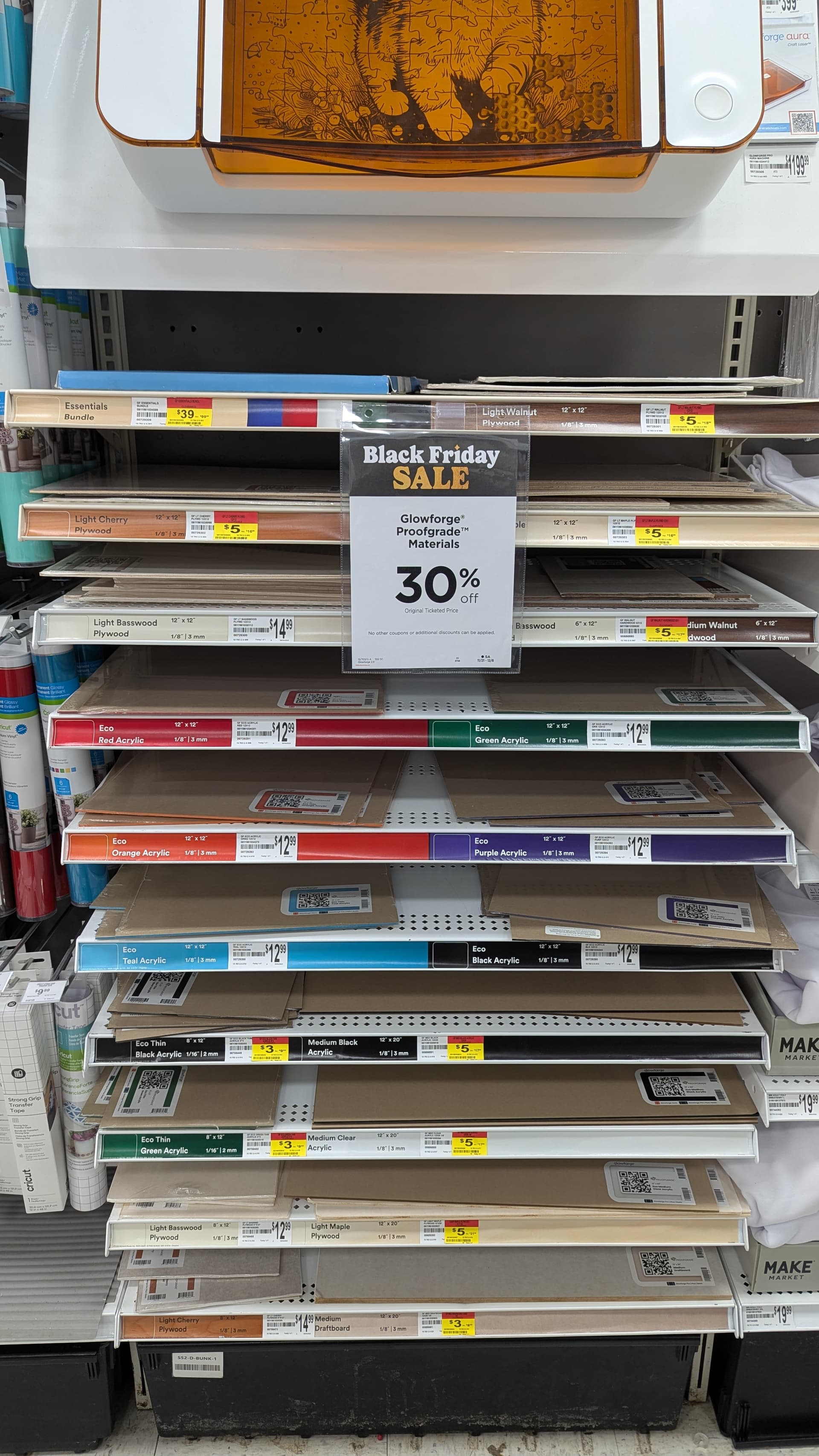 I was at another Michaels today and they also had a selection of Proofgrade acrylic, wood and iron-on packs marked down by 60% in their clearance aisle.