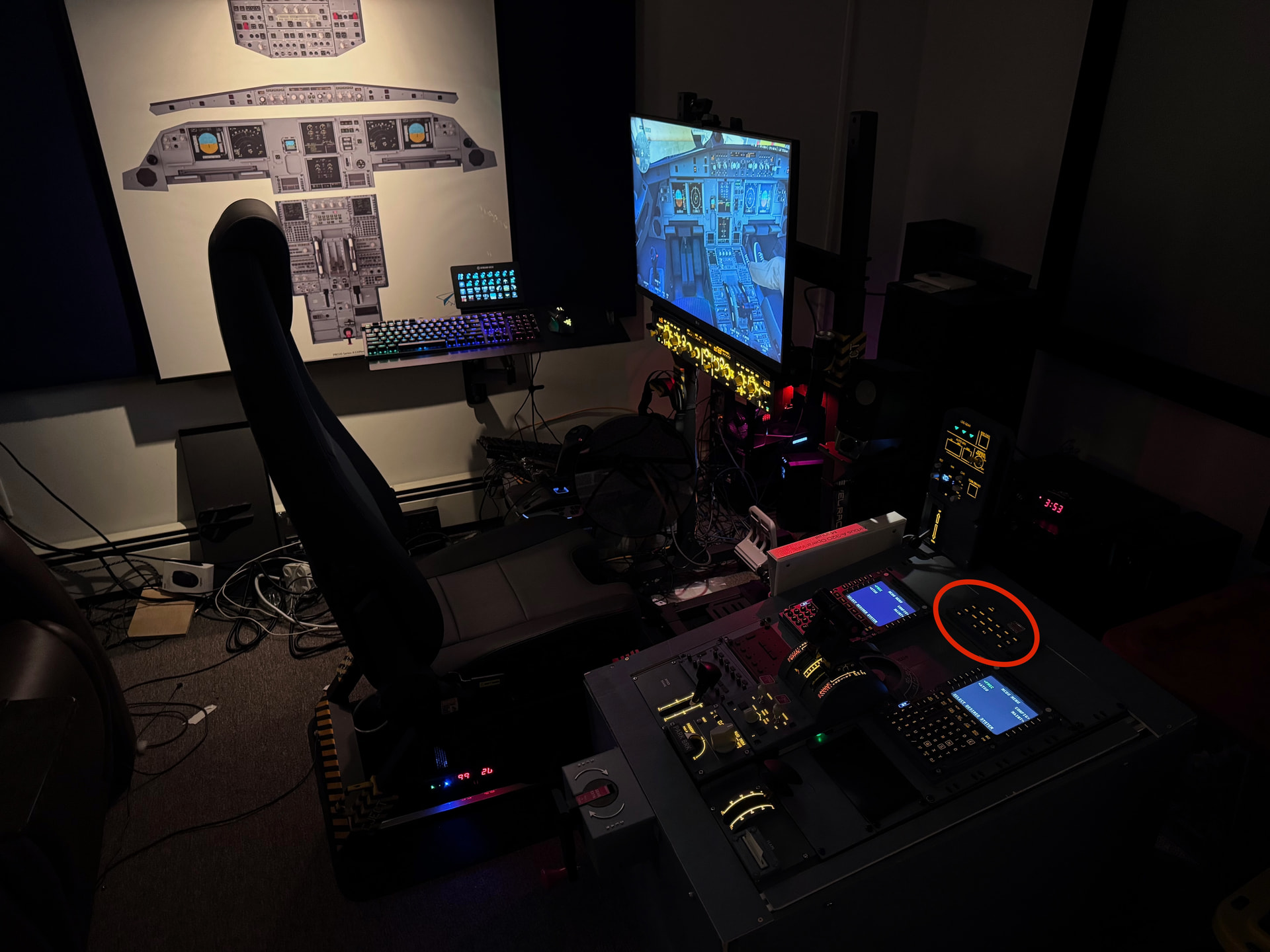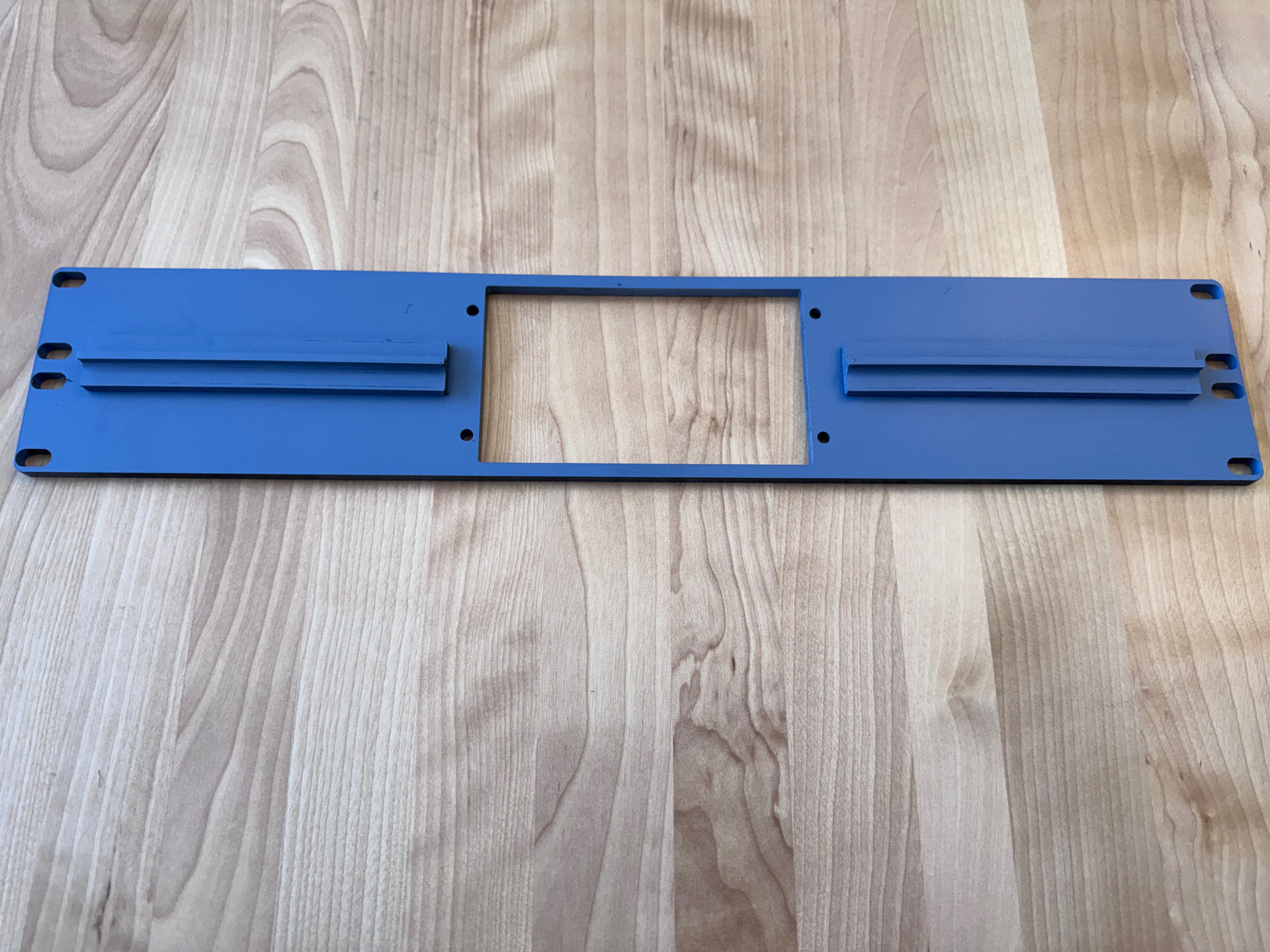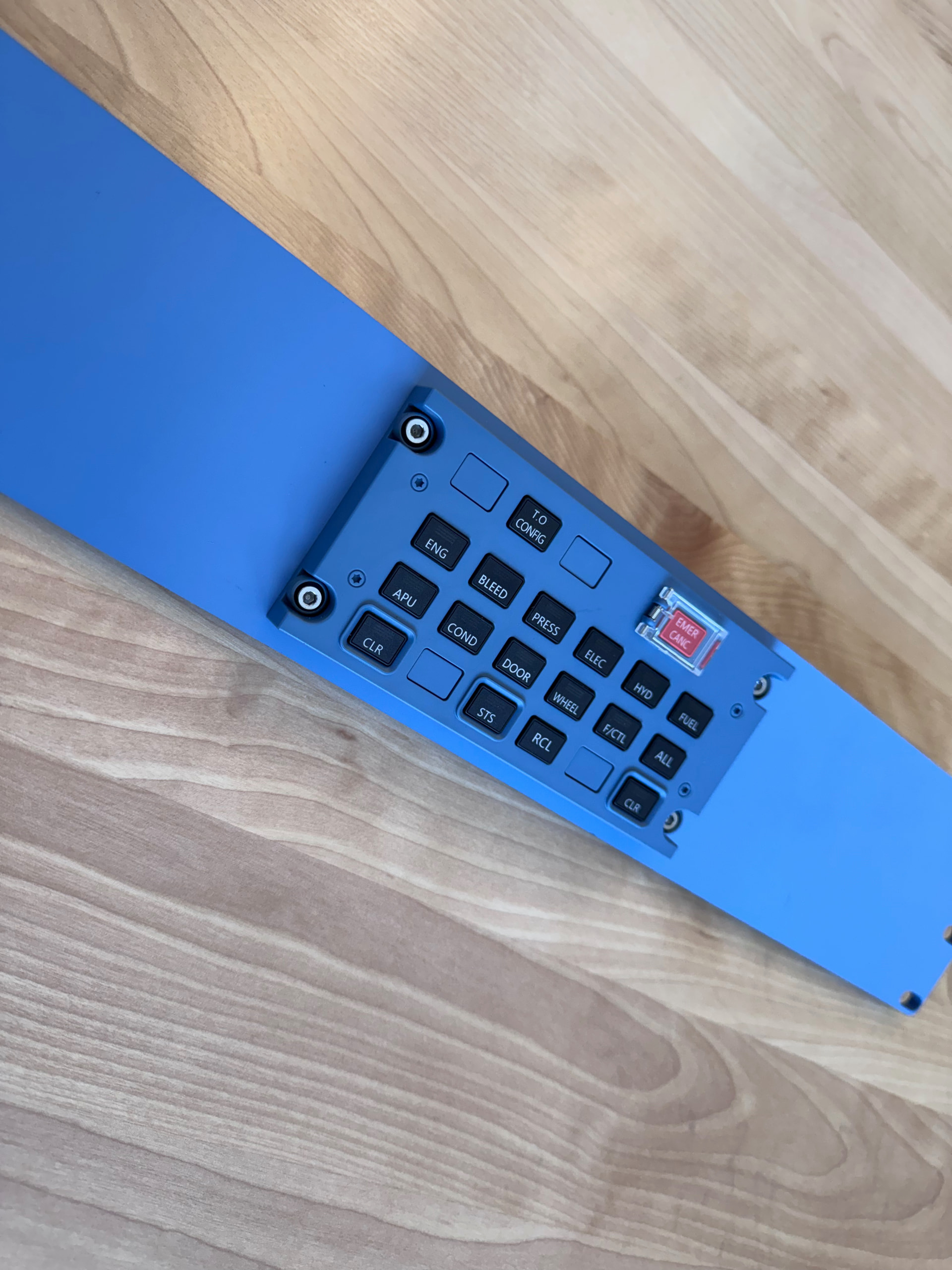 My Airbus A320 flight simulator for home is getting pretty complete (photo towards the end), and recently my ECAM (Electronic Centralized Aircraft Monitoring) panel from WinCTRL (formerly WinWing) arrived and the panel I planed to mount it on in the pedestal is a steel ventilated 19” rack mount panel. I attempted to put a cutout in the grille to mount the panel (what an unmitigated disaster!) I could have tried milling it on my Tormach but sheet metal tends to mill poorly (although honestly couldn’t have been worse than cutting it with a Dremel!) So I needed a new panel that fit the ECAM panel. Originally I was going to 3D print the panel, but even my large Prusa XL can only print a half-panel, and while some of the other panels are in fact 3D printed this way with a flange in the middle to be bolted together, the flange wouldn’t work here since the ECAM panel is centered on top between the MCDUs (the flight computers). So thick acrylic was the goto material. Luckily I just exported the 3D printed surface as a DXF to keep the screw holes in the right place, and converted that to SVG then put the cutout in the middle for the panel.