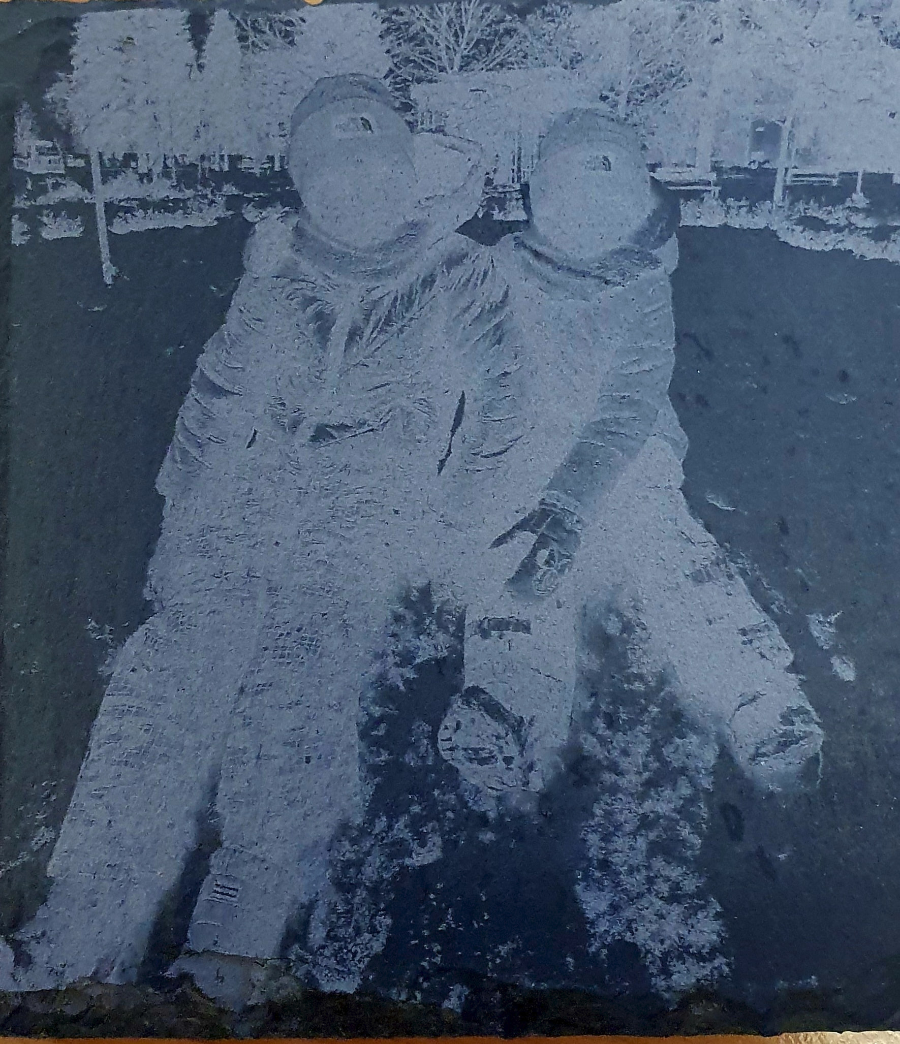 The extra half thing: not all images are great candidates for engraving. Your picture is great, captures a fun moment, I’m sure it’s a keepsake. That said the best engravable images tend to be simpler with clear subjects and uncluttered backgrounds. There’s a lot happening here, it may not be the ideal image to try, especially on a material like slate where greys are hard to capture.