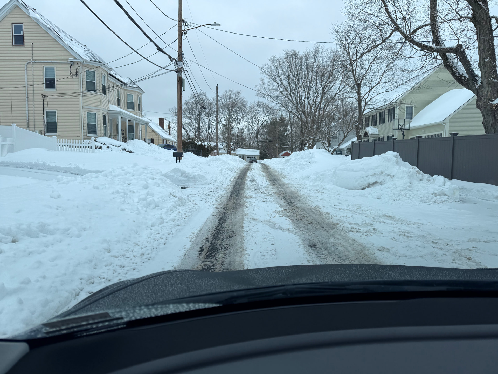 And here is a photo of a street off my street to show you why I am out in the street fixing this at least near my house. That is supposed to be wide enough to let 2 cars pass. I mean it is 2 days after the big storm they’ve had plenty of time to fix the streets…