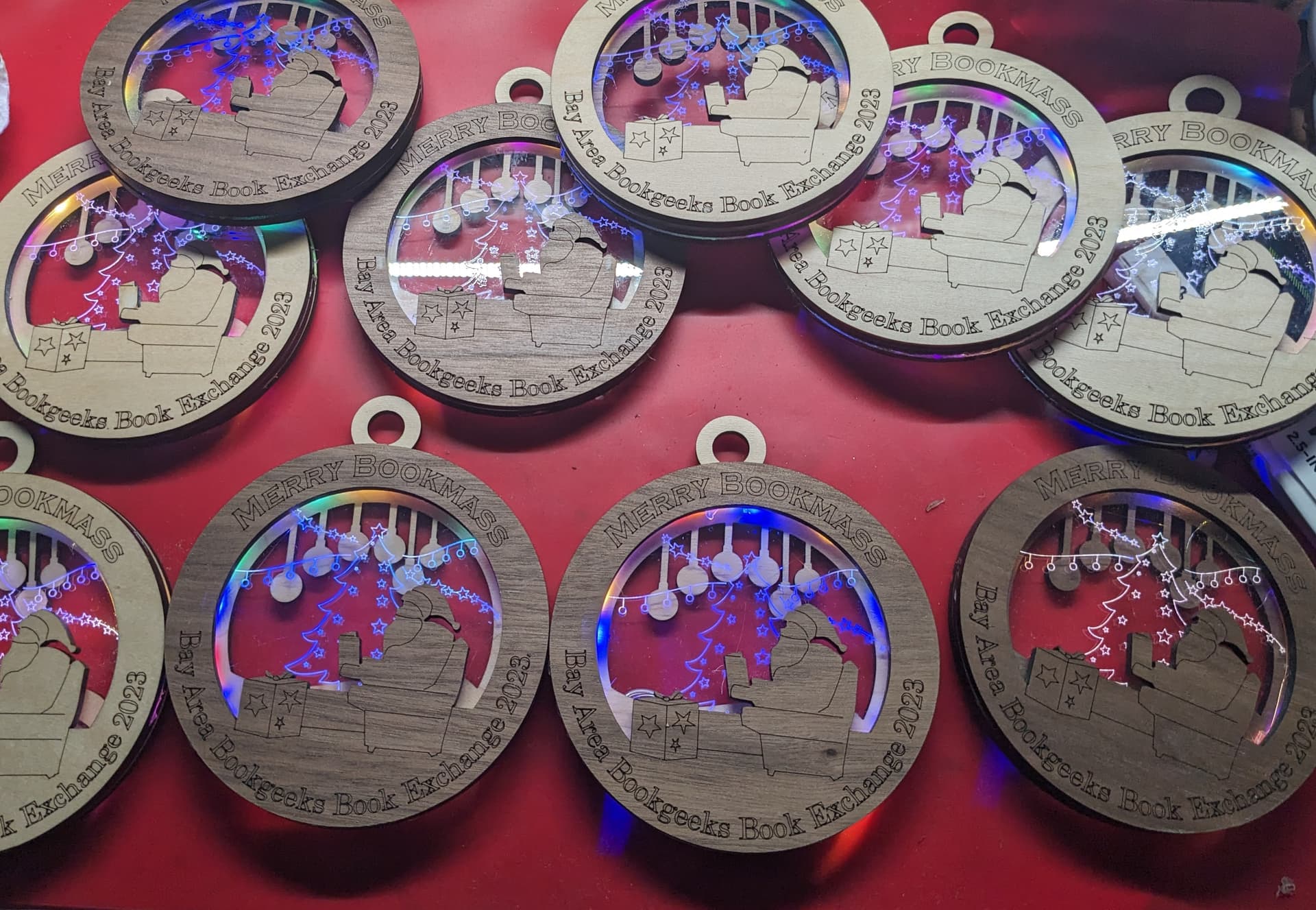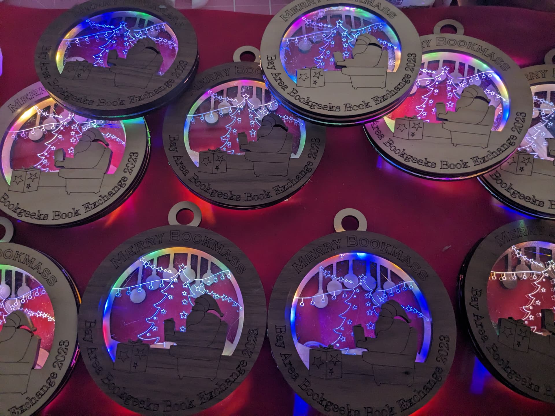 Fairly pleased with how they turned out. If I was going to do it again I’d probably try for brighter led’s these were cheap strings run off two little coin cell so not very bright. Going with just a single colour would have helped too although I quite like the rainbow of lights.