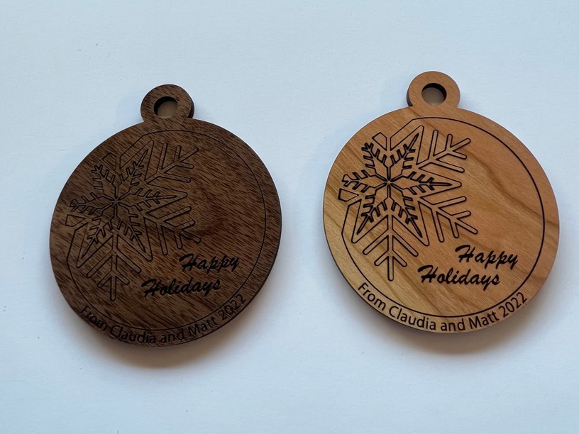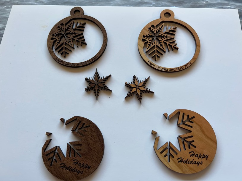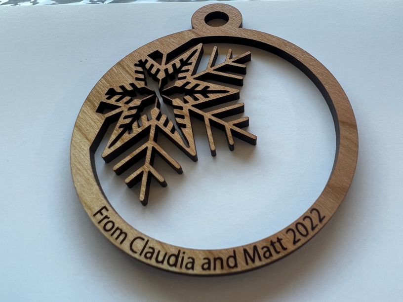 Artwork was derived from one of the Glowforge Clip Art snowflakes, and modified in Illustrator.