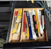My husband asked if I could make him a wooden box to hold his pens in his tool chest. He’d been using an old checkbook box for many years, and it was falling apart, and gave me specific dimensions he wanted. So I thought I would try the new box maker in GF. It took less than a minute to generate and about 2-3 minutes to cut.