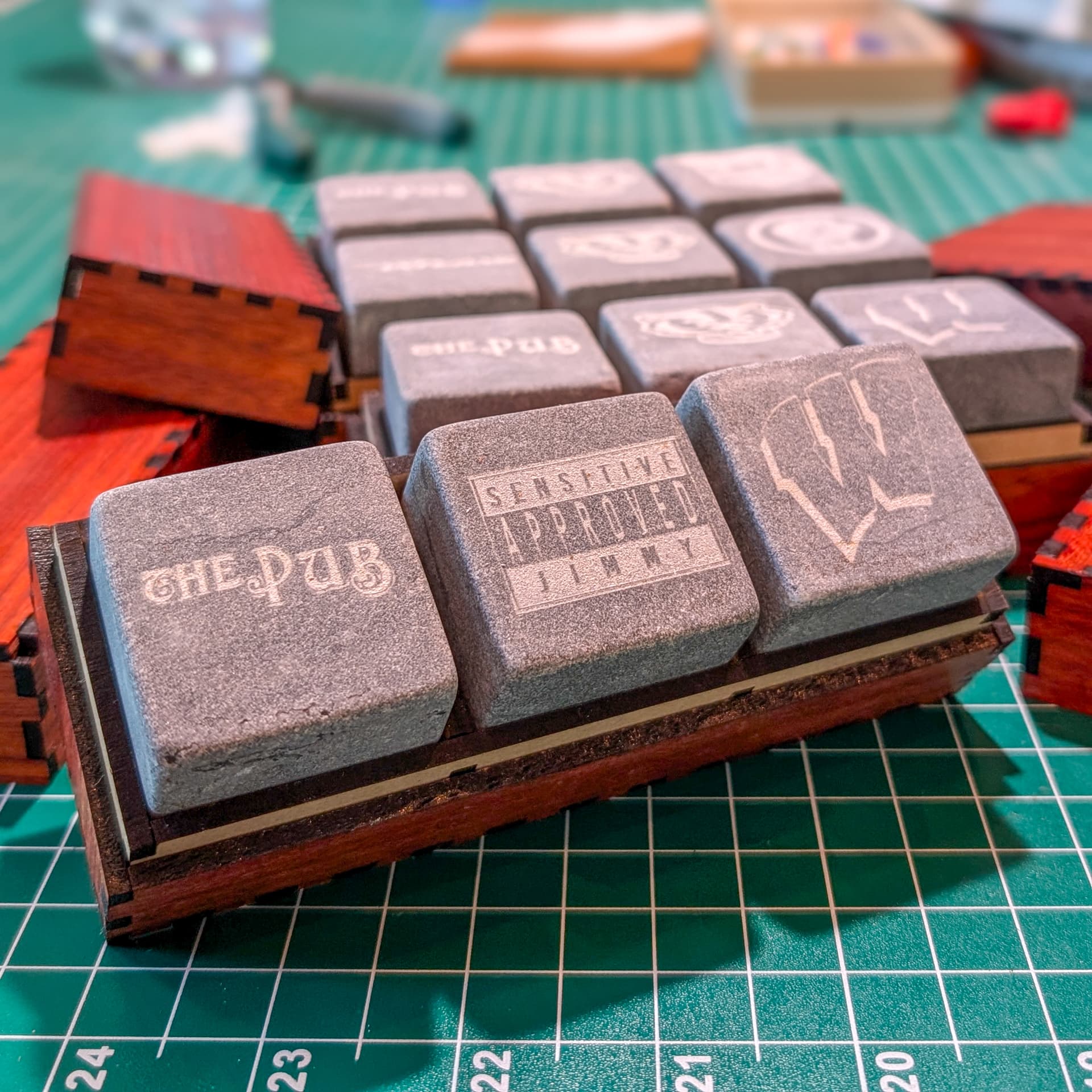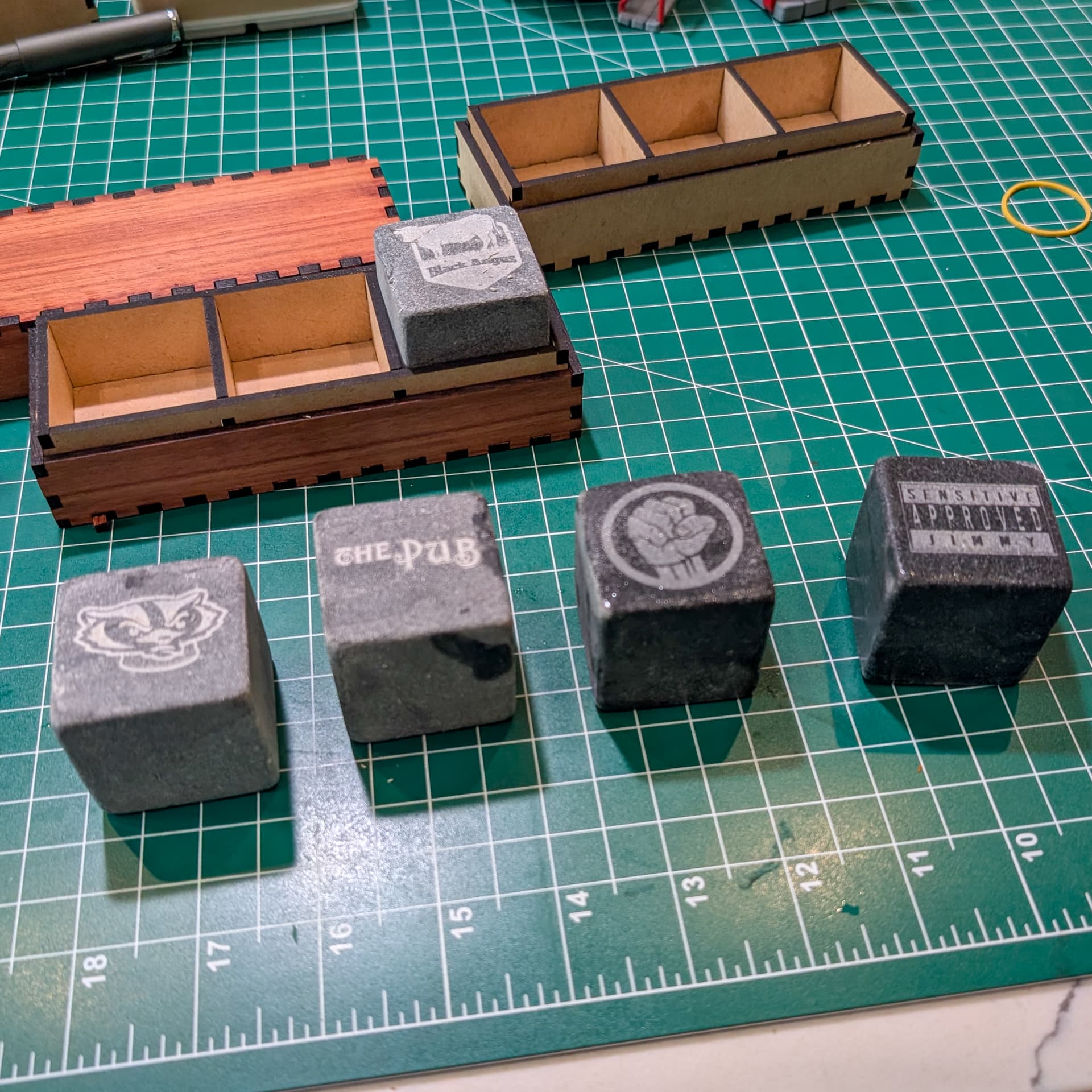 Came out really nice! Add me to the list of folks that knew nothing about whiskey stones, let alone the possibility of engraving them. A new industry is born!